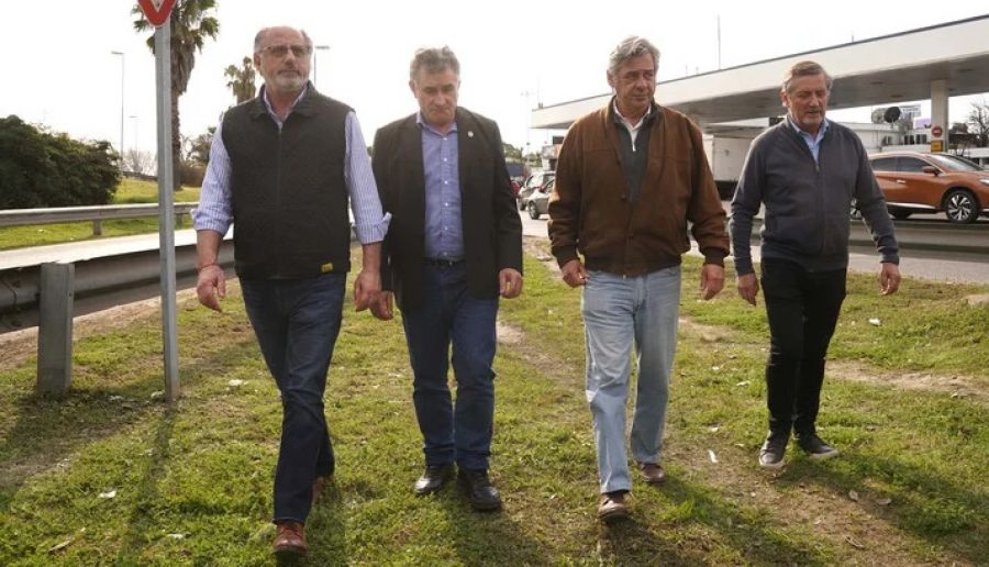 "Necesitamos que nos desafecten la parte impositiva", sostuvo el titular de la Federación Agraria, Carlos Achetoni junto a los presidente de la Sociedad Rural, Nicolás Pino y CRA, Jorge Chemes y el vice de Coningaro, Elbio Laucirica.