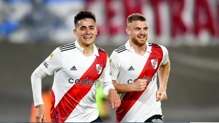 River apareció con un dibujo táctico distinto, con l aparición en la mitad de la cancha de Juanfer Quintero, y con De la Cruz, más cerca de Enzo Pérez, Dos volantes creativos, Quintero y Palavecino, de muy buen partido, terminaron horadando la resistencia de Newells.