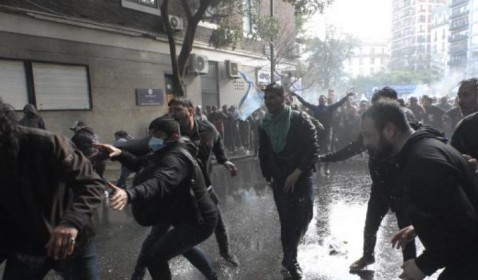 La Policía de Caba utilizó en el operativo carros hidrantes para dispersar a manfestantes después que empujaron las vallas. La refriega culminó con 7 uniformados heridos y tres detenidos, que enseguida recuperaron su libertad