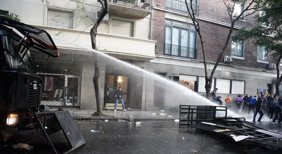 El hecho ocurrió cuando un grupo de militantes tiraron las vallas que se habían instalado en la zona, lo que provocó que los efectivos policiales activaran el camión hidrante para dispersarlos. Tres de los arrestados ya fueron liberados