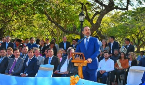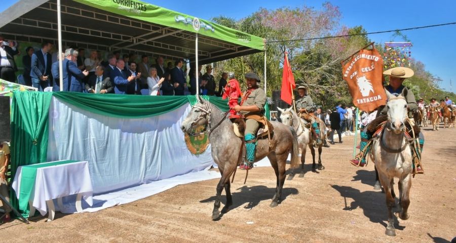 El gobernador Gustavo Valdés presidió esta mañana el acto central en conmemoración al 78º aniversario de la creación institucional de la localidad de Tatacuá, realizado frente al edificio municipal.