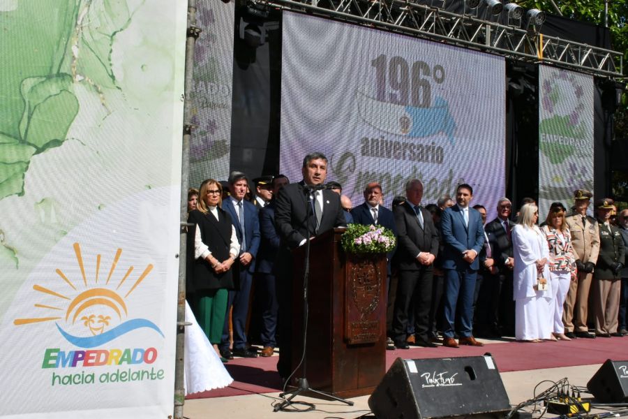 En el marco del acto por el 196º aniversario de la fundación de Empedrado y la celebración de las fiestas patronales por Nuestro Señor Hallado, el gobernador Gustavo Valdés, junto al intendente José Cheme, firmó esta mañana convenios para la construcción de 10 viviendas y 10 cuadras de cordón cuneta; cómo así también, entregó un subsidio a la comuna para la organización de la celebración y otro para fortalecer la labor de los Bomberos Voluntarios. Además, anunció la refacción de la escuela Normal y obras en el Camping municipal.