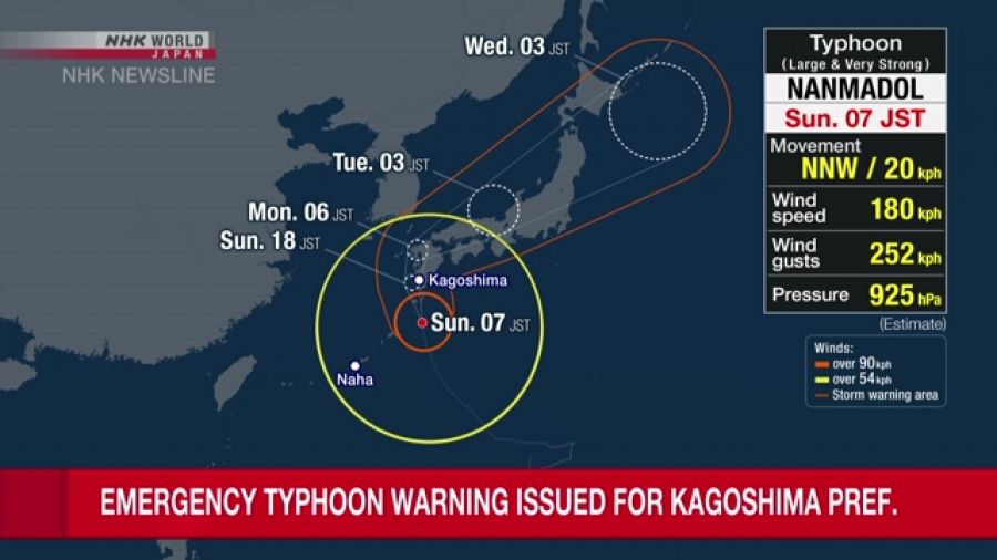 La Agencia Meteorológica de Japón (JMA) emitió una alerta especial ante la llegada a la isla de Kyushu el domingo del poderoso tifón, que calificó de tormenta "sin precedentes" en el país. Es la primera vez que la JMA activa una alerta de este tipo para una de las cuatro principales islas del archipiélago.