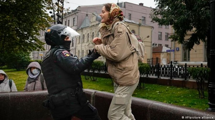 La protesta, convocada por el movimiento juvenil opositor Vesna (Primavera) transcurrió bajo el lema "Asamblea de mujeres de negro". La de este sábado es la segunda manifestación contra la movilización ordenada por Putin, quien argumentó la medida por la necesidad de defender la soberanía y la integridad territorial del país, que en febrero invadió a su vecino Ucrania.