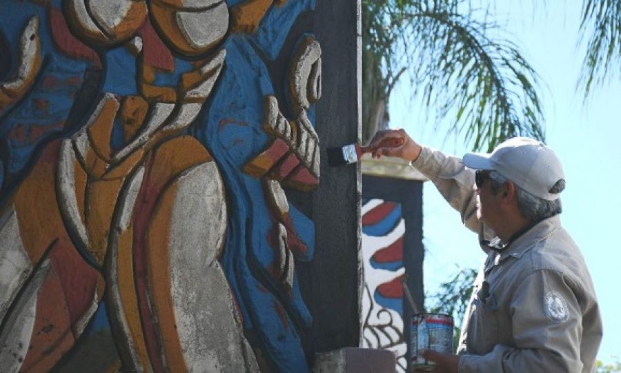 Los trabajos se enmarcan en la revalorización de las esculturas existentes, que hicieron de Corrientes a la Ciudad de los Murales, y en el marco de las actividades realizadas por la Municipalidad en la Semana del Comparsero.