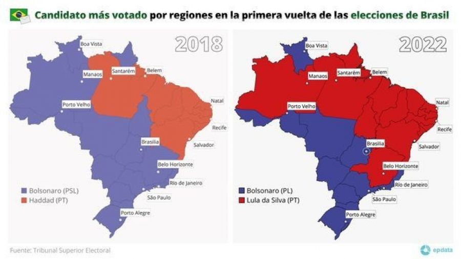 · Bahía: Lula 69,73% - Jair Bolsonaro 24,31%