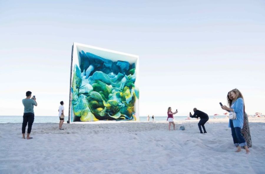 “Machine Hallucinations: Coral” es una de las obras más importantes de la historia del arte digital. En el cruce entre arte, ciencia y tecnología esta obra tridimensional presentada por primera vez en la playa del Faena Hotel durante la Art Basel Week 2021, en Miami, combina data science, pintura digital, audio, performance e instalación inmersiva.