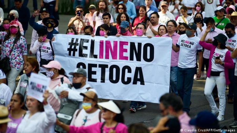 "¡El INE no se toca!" fue la principal consigna de la llamada "Marcha por la Democracia", a la cual "asistieron entre 10.000 y 12.000 personas", según calculó el Secretario de Gobierno de la Ciudad de México, Mantí Batres. "¡A eso vine, a defender al INE!" fue el grito principal de los asistentes, que acudieron vistiendo prendas rosa, color que identifica al Instituto Nacional Electoral y que, según López Obrador, avaló fraudes en las elecciones presidenciales de 2006 y 2012, donde el entonces candidato fue derrotado.