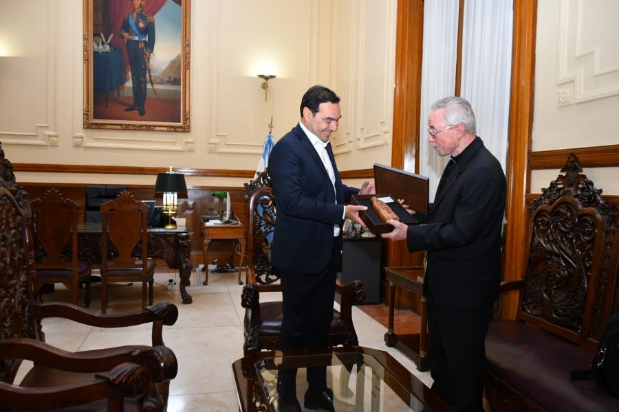 Monseñor Andrés Stanovnik visitó hoy al gobernador Gustavo Valdés y dio una bendición en Casa de Gobierno en la.que destacó destaca la "humildad" y "unidad" del seleccionado de fútbol campeón en Qatar.