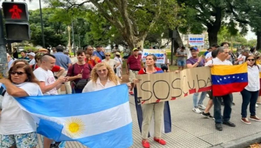 "Dictadores nunca más", fue la consigna de la movilización, en coincidencia con el hashtag que habían utilizado distintos sectores de Juntos por el Cambio en los comunicados que difundieron para rechazar la invitación que cursó el presidente Alberto Fernández a Maduro y a otros mandatarios de izquierda como Miguel Díaz Canel (Cuba) y Daniel Ortega (Nicaragua).
