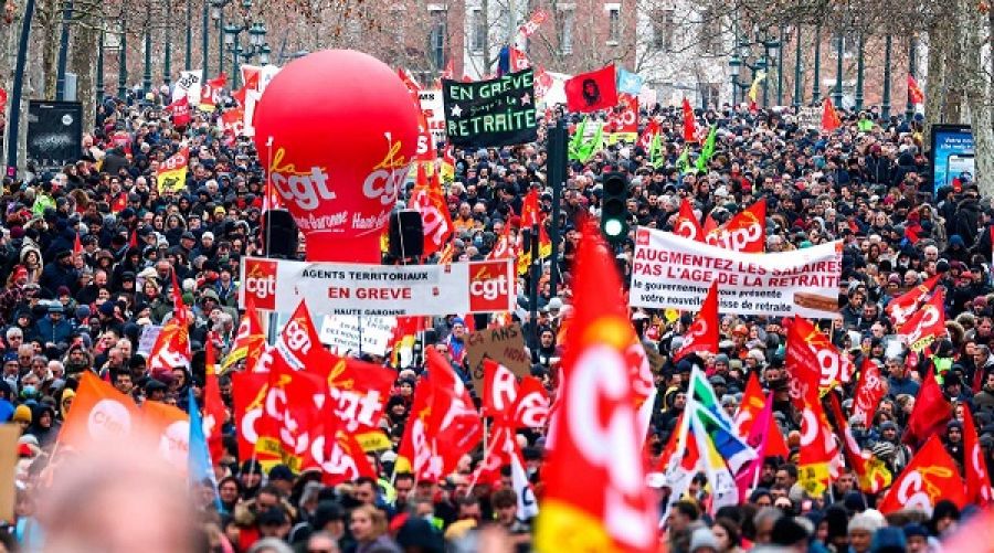 Los sindicatos amenazaron este sábado con "paralizar" Francia en marzo si el presidente francés Emmanuel Macron "no escucha" el rechazo mayoritario de la población a su reforma de las pensiones, en plena jornada de nuevas manifestaciones masivas.