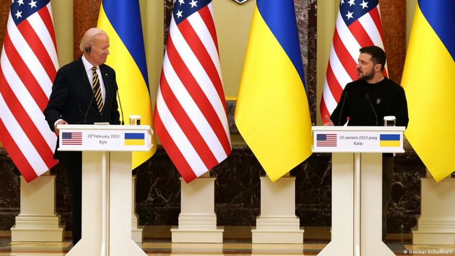 "Un año después, Kiev sigue de pie. Ucrania sigue de pie y la democracia sigue de pie", proclamó el líder estadounidense.