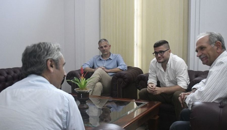 El director de Operaciones Industriales en Sika Argentina, Daniel Laino, junto a otros directivos expresaron el interés este lunes durante una visita al Municipio donde fueron recibidos por el viceintendente Emilio Lanari