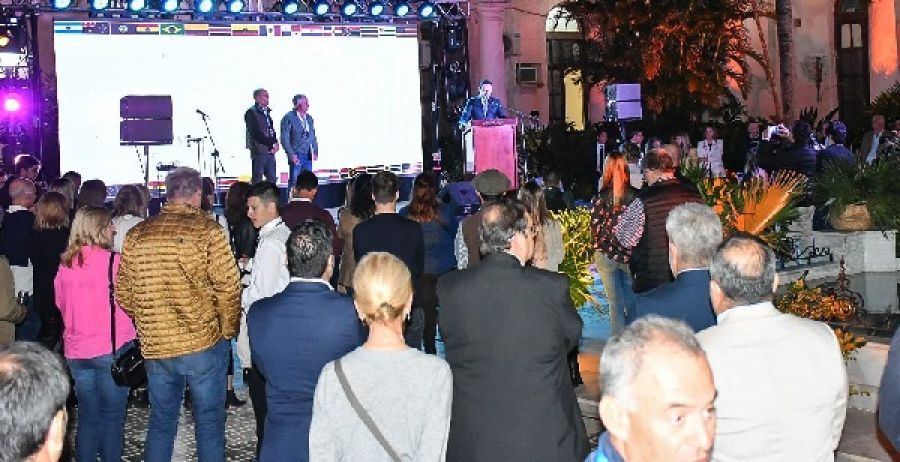 El gobernador de Corrientes, Gustavo Valdés, en el patio de la Casa de Gobierno participó del Cocktail de Apertura del Congreso Mundial Brangus 2023 que se desarrolla desde ayer en ael predio de la Sociedad Rural de Corrientes