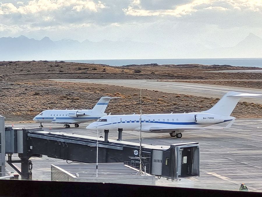 El avión matrícula RA-73550, que no sobrevoló el espacio aéreo de la Unión Europea, permaneció pocas horas en la terminal aérea patagónica y emprendió vuelo hacia el Aeropuerto Internacional de Ezeiza "Ministro Pistarini".