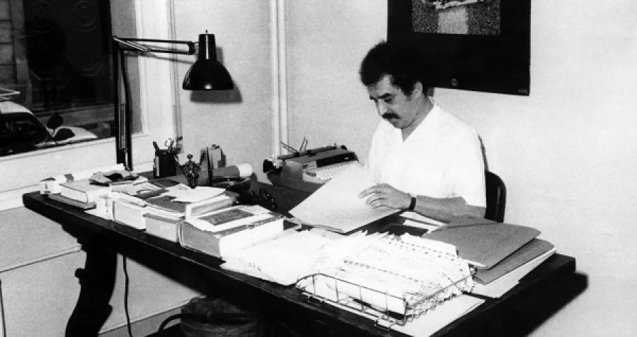 El escritor colombiano Gabriel García Márquez escribe "El otoño del patriarca" en su residencia de Barcelona el 14 de noviembre de 1970.