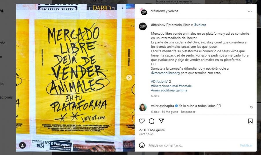 “La plataforma está vendiendo animales en su plataforma, convirtiéndose así en un intermediario de atrocidades. Forma parte de una cadena delictiva, injusta y cruel que considera a los animales como meros objetos para obtener ganancias”, denuncian los activistas de Voicot y DifusionV.