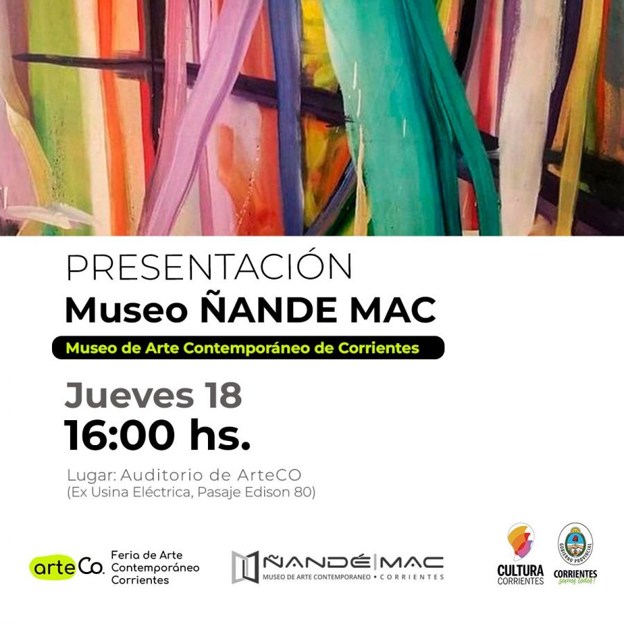 El Museo de Arte Contemporáneo de Corrientes Ñande (Tr. Gu. Nuestro) MAC será presentado este jueves 18 a las 16 horas en el Auditorio Central de Arte CO 2023, en la Ex Usina de Corrientes, Costanera y Édison de la Ciudad de Corrientes.