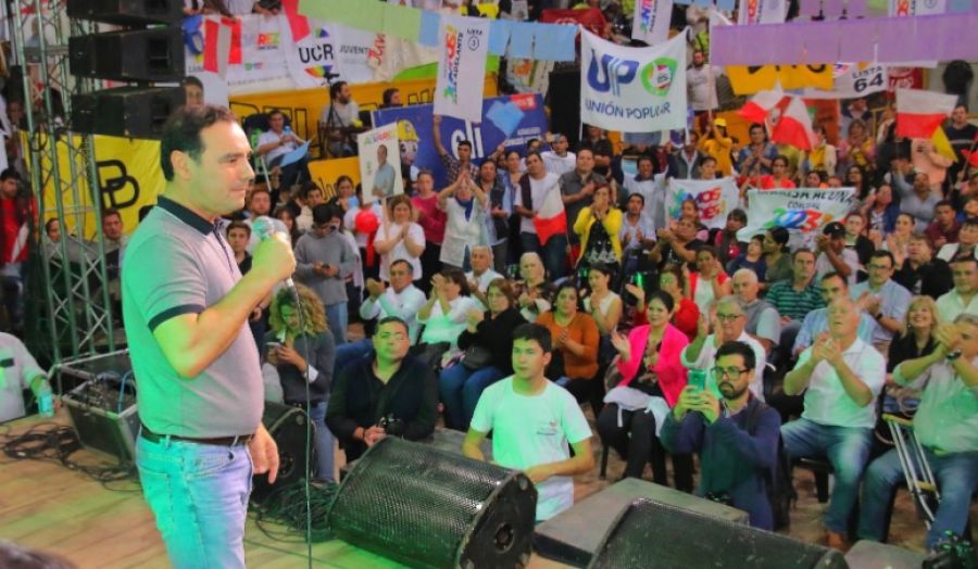 En el palco, lo acompañaron los candidatos locales Nicolás Álvarez Pereyra, Mariel Naya Yrigoyen, Pedro González, Mariza Acuña, Hernán Ortíz y Marisa Flores y a legisalores provinciales, Lorena Lazaroff y Ricardo Colombi.