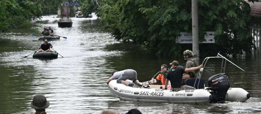 La inundación obliga a los soldados ucranianos a avanzar cautelosamente por las aguas hasta llegar al lado izquierdo. Primero a la ciudad de Oleshky, que quedó casi totalmente inundada. Videos divulgados en redes sociales muestran a los vecinos sentados en los techos de sus viviendas, esperando ayuda. Grupos de rescatistas intentan llegar hasta allá desde Jersón a bordo de botes pesados, porque los más ligeros son arrastrados por la corriente.