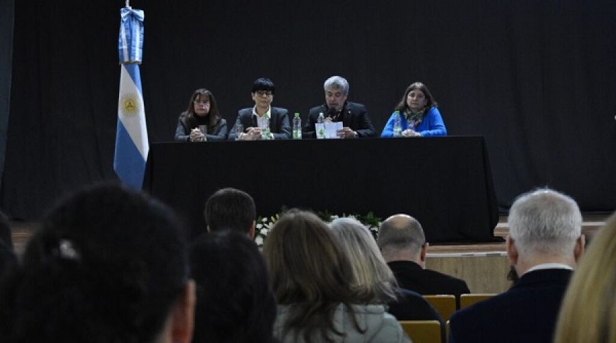 Funcionarias del Ministerio de Ciencia de la Nación, del CONICET, acompañaron al rector Omar Larroza en el acto de apertura del encuentro