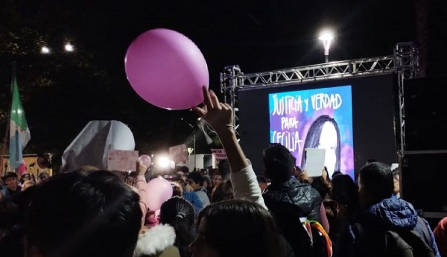 Cientos de ciudadanos la mayoría llegados desde barriadas populares de Resistencia acompañaron el reclamo de justicia de la madre de Cecilia, Gloria Romero y se agolparon en una de las esquinas de la plaza central de la ciudad frente a un pequeño escenario decorado con globos rosados y desde donde una pantalla difundía fotografías de Cecilia