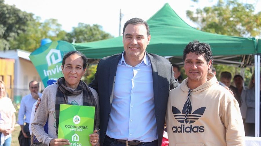 El gobernador Gustavo Valdés encabezó este viernes el acto de entrega de 10 viviendas del programa “Oñondivé” en el paraje Galarza, departamento de Santo Tomé.