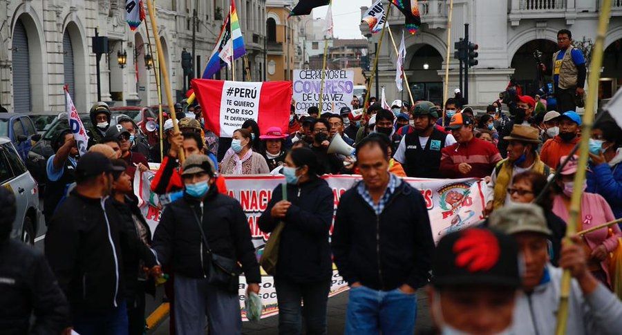 "Dina asesina, el pueblo te repudia", "Ni un muerto más", "El pueblo no se rinde carajo" fueron algunos de los reclamos que se escucharon en la capital durante la marcha, que fue convocada por distintos colectivos estudiantiles, regionales, sindicatos y organizaciones feministas, y cuyo destino era llegar al Congreso.