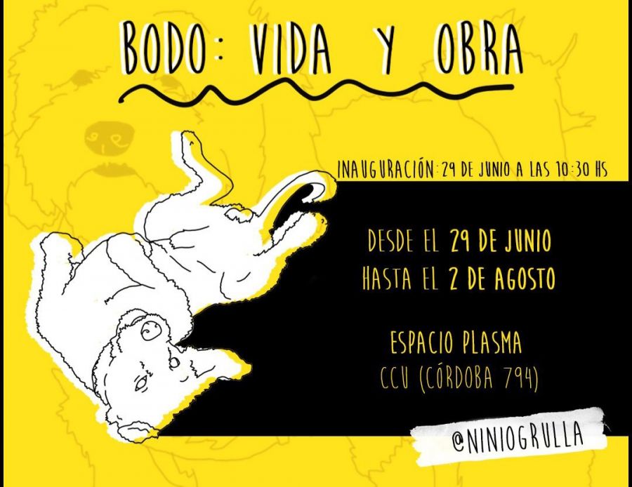 Este Jueves 29 de Junio el Espacio Plasma del Centro Cultural Universitario del CCU expondrá las ilustraciones de Ninio grulla (Alejandro Joaquín Vallejos) sobre su compañero Bodo y podrá ser visitada hasta el 2 de Agosto.