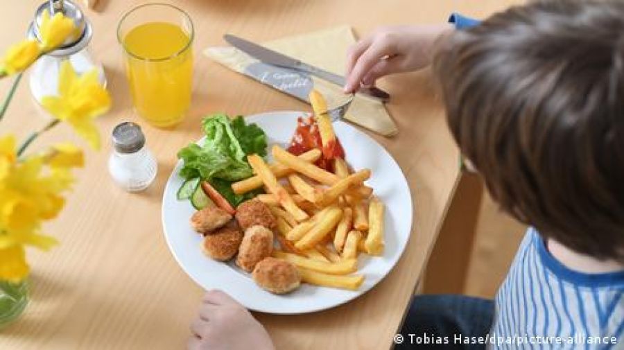 Niño frente a plato con croquetas de pollo, papas fritas y jugo de naranjaNiño frente a plato con croquetas de pollo, papas fritas y jugo de naranja Las costumbres alimentarias del ser humano han marcado la evolución del pollo a lo largo de los siglosImagen: Tobias Hase/dpa/picture-alliance Pero el pollo de engorde también sustenta esa definición debido a su omnipresencia. En cualquier rincón del planeta donde hay humanos se encuentran restos de la fuente de proteína favorita de nuestra especie.