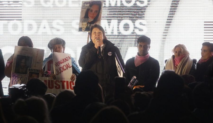 En el escenario acompañando a Gloria se encontraban las organizaciones Madres del Dolor, Madres Víctima de Trata, Juan Carlos Blumberg, Mujeres Barrios del Sur, Graciela Sosa y Silvino Báez (los padres de Fernando) y Patricia Ortiz, entre otras madres y padres que uno tras otro, tras tomar la palabra denunciaban la impunidad, la desidia y la incapacidad del sistema judicial de garantizar un proceso ajustado a derecho.