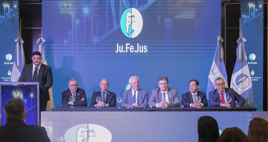 En la apertura los Ministros de la Corte Provincial y el Fiscal General, bajo la organmziación del l Poder Judicial de Corrientes y la Junta Federal de Cortes y Superiores Tribunales de las Provincias Argentinas y CABA (JUFEJUS)