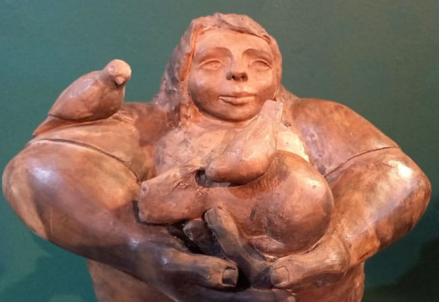 En algunas de ellas podemos ver figuras con reminiscencias a una tiempo pasado, con manos y pies gigantes hechas de tierra y fuego, piezas que fueron a su vez amasadas y construidas por las manos del artista pero a diferencia de este, sus personajes sostienen seres de nuestro entorno natural a modo de plegaria de un mundo que lentamente parece estar yéndose de nuestras manos, hay seres propios del monte y otros que nos acompañaron en nuestras labores desde el principio de lo que llamamos civilizacion, veo en ellas una honradez de la tierra y la poesía que emerge nos conecta con ese yo primitivo y natural, con esa memoria de la humanidad."
