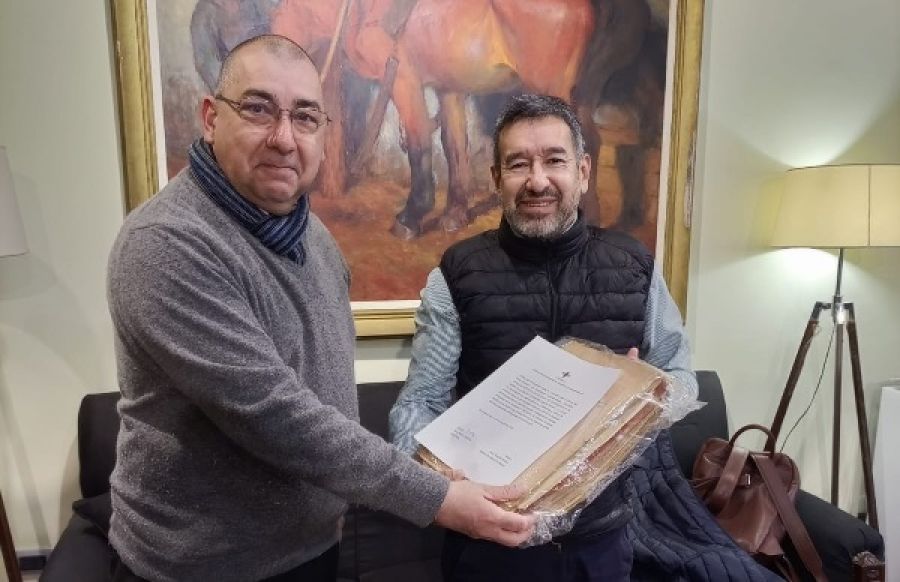 El presidente del Instituto de Cultura de Corrientes, Gabriel Romero, recibió una donación de Ramón Gutiérrez, del Centro de Documentación de Arquitectura Latinoamericana (CEDODAL), que pasará a formar parte del patrimonio del Archivo de la Provincia.
