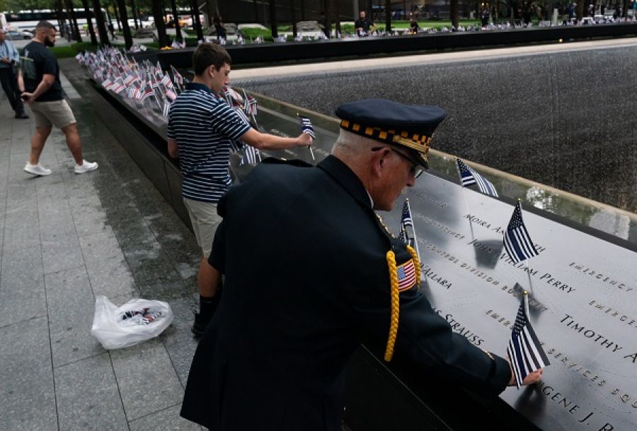 Cada 11 de septiembre, los dos fosos que este lunes sustituyen a las torres y en los que están inscritos los nombres de los muertos en el atentado, se llenan de banderitas de Estados Unidos y rosas amarillas, en unos actos sobrios y solemnes al mismo tiempo y que duran varias horas.