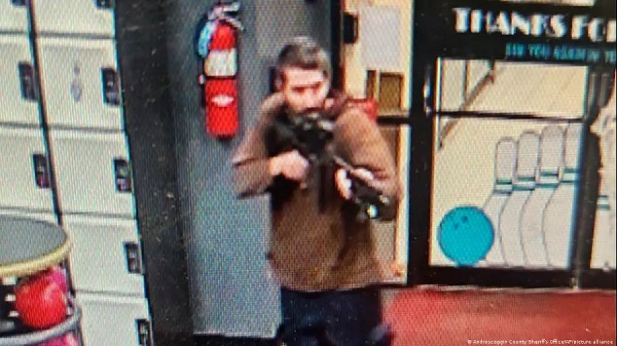 En las imágenes publicadas en redes sociales por la oficina del alguacil del condado de Androscoggin, donde se encuentra Lewiston, se puede ver a un hombre con un fusil de asalto entrando en una bolera.