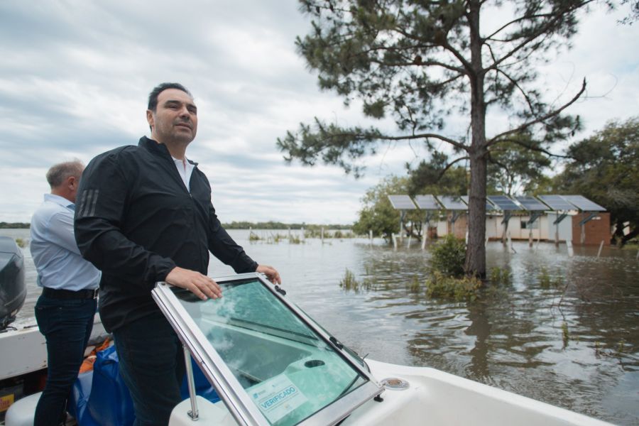 El gobernador Gustavo Valdés recorre zonas afectadas por el temporal, la creciente de los ríos producto del incremento de lluvias y caudales en Brasil y la apertura de compuertas en Yacyretá.