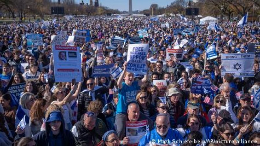 Decenas de miles de personas se congregaron este martes (14.11.2023) en Washington para apoyar a Israel y condenar el antisemitismo, tras semanas de manifestaciones mayoritariamente propalestinas en un Estados Unidos profundamente dividido.