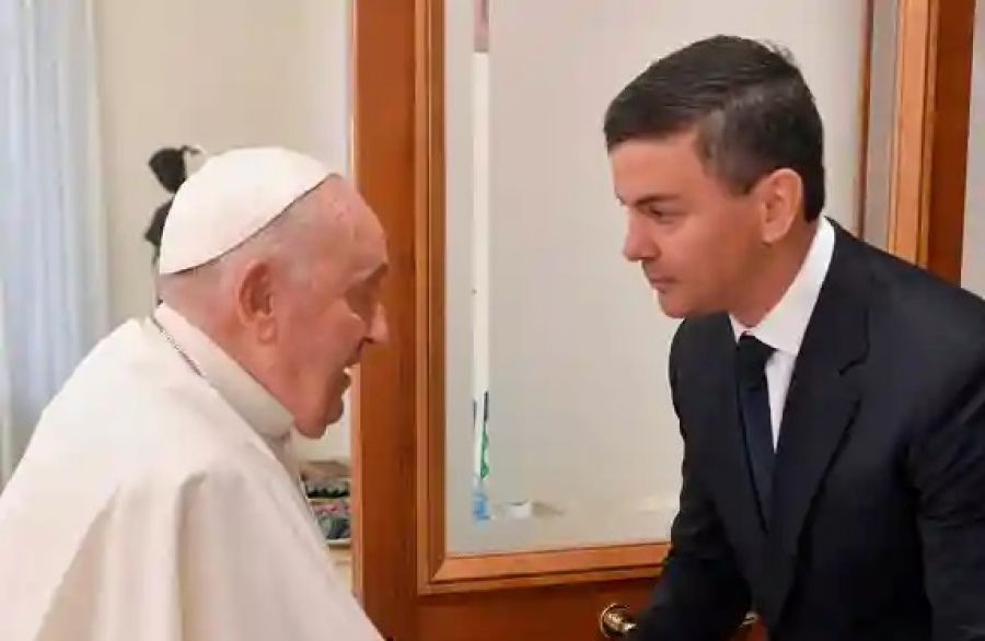 El papa Francisco recibió este lunes (27.11.2023) en audiencia al presidente de Paraguay, Santiago Peña, en su residencia de la Casa de Santa Marta debido al "problema de inflamación pulmonar" que ya le impidió este domingo rezar el Ángelus en la plaza de San Pedro. La recepción de un jefe de Estado en la residencia papal en lugar del habitual palacio pontificio es algo completamente inusual, que solo ha ocurrido en contadas ocasiones, según fuentes de la sala de prensa vaticana.