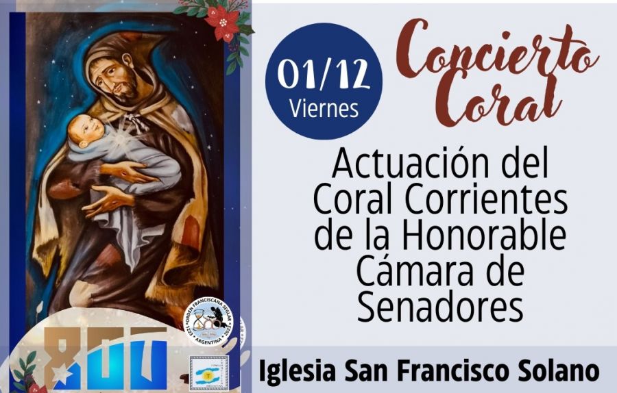 En el antiguo templo correntino, se podrá disfrutar de un Concierto Coral con la actuación del Coral Corrientes de la Honorable Cámara de Senadores de la Provincia.