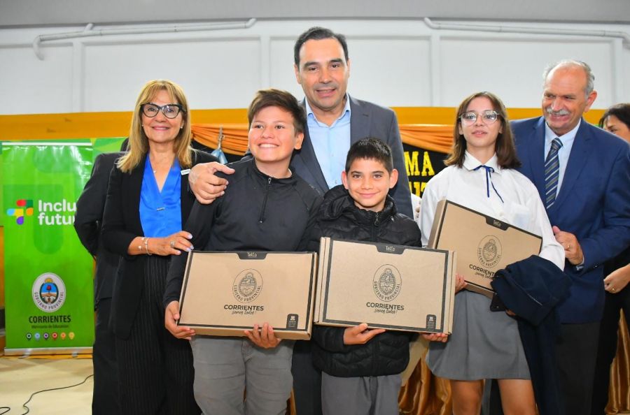 749 alumnos de distintos establecimientos secundarios de la Capital y zonas aledañas recibieron notebooks del programa provincial “Incluir Futuro”. El acto fue presidido por el gobernador Gustavo Valdés, quien ratificó su compromiso con la educación pública en la provincia.