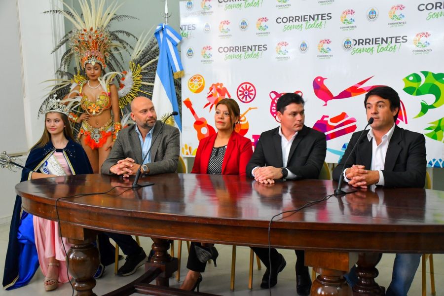 Estuvieron en la presentación, la ministra de Turismo, Alejandra Eliciri, el subsecretario de Promoción e Inversiones Turísticas, Klaus Liebig, el viceintendente, Ubaldo Leiva, la diputada provincial, Lucía Centurión, el presidente de la Comisión Oficial de corsos, Fabián Galfrascoli, el titular de la comparsa Renacer, Valentín Vera, en representación de la comparsa Itá Berá, Juan Ayala, demás autoridades y público en general.