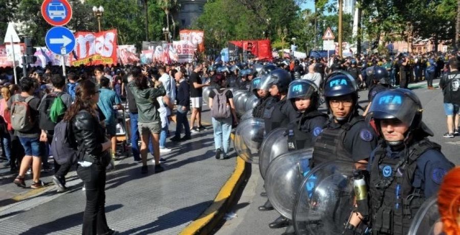 Previamente se registraron incidentes en Diagonal Norte y en avenida Belgrano pero tras algunas escaramuzas y corridas, la situación se calmó y los manifestantes siguieron marchando, aunque hubo dos manifestantes detenidos, según fuentes policiales.
