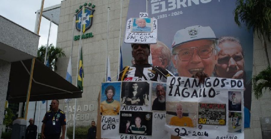 El velatorio fue en la sede de la Confederación Brasileña de Fútbol (CBF), cuya fachada lucía un cartel en el que se leía "Zagallo Eterno", una frase con "13 letras", el número preferido del "Viejo Lobo", quien admitía ser supersticioso como pocos.
