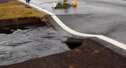Sumado a los destrozos que sufrió Mercedes, la ciudad de Goya también sufrió las consecuencias del temporal. Sin ir más lejos, la Ruta Nacional 12 socavó este lunes y el tránsito vehicular debió ser interrumpido en forma total, según informaron fuentes locales.