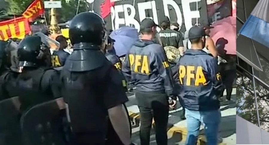 Todo se desarrollaba sin problemas, hasta que un grupo de manifestantes se desplazó hacia Avenida Rivadavia con intención de cortar dos carriles. Gendarmería avanzó hacia ellos para que vuelvan a la vereda como lo indica el nuevo protocolo antipiquetes, pero se resistieron.
