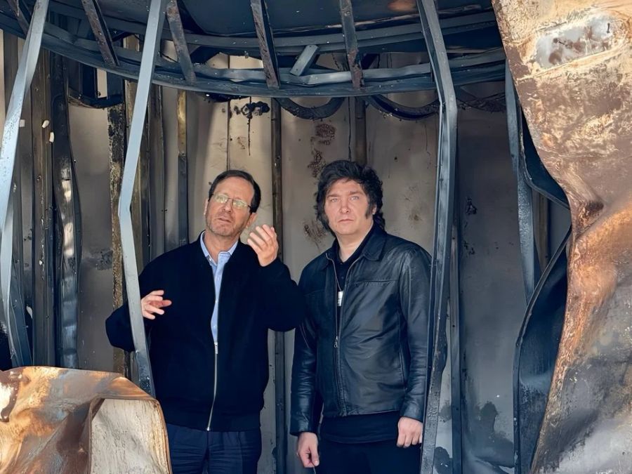 El líder libertario visitó el kibutz Nir Oz, ubicado a solo 2,5 kilómetros de la Franja de Gaza y uno de los lugares atacados por Hamás el 7 de octubre de 2023: asistió al lugar acompañado por el presidente israelí, Isaac Herzog.