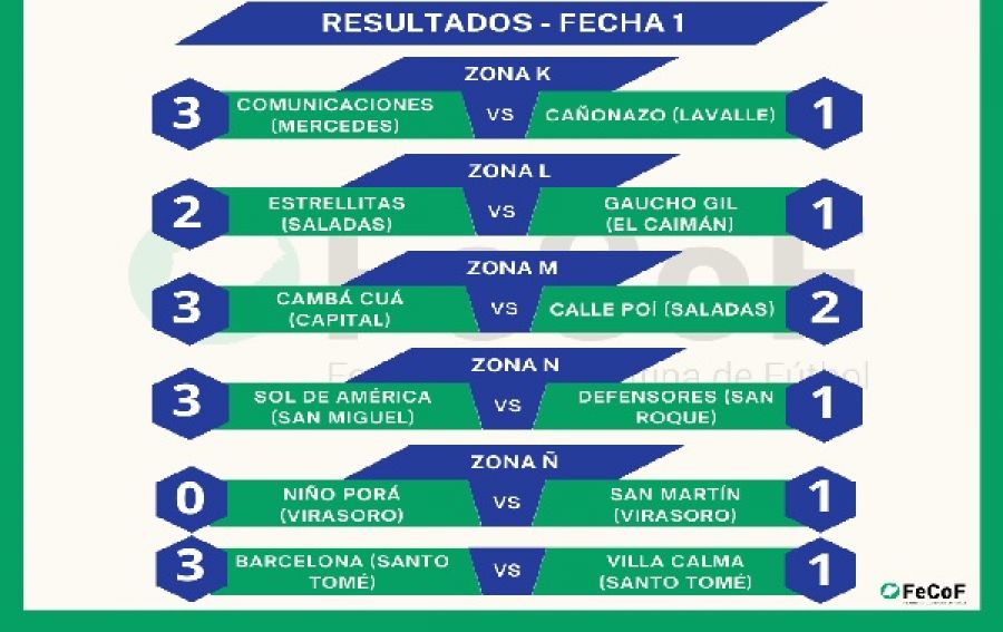 ZONA Ñ: Barcelona (Santo Tomé) 3 - Villa Calma (Santo Tomé) 1 / Niño Porá (Virasoro) 0 – San Martín (Virasoro) 1