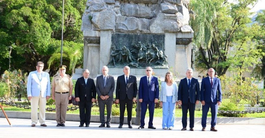El intendente Eduardo Tassano encabezó en la mañana de este domingo los actos conmemorativos en la Ciudad por el 246º aniversario del natalicio del General José de San Martín, actividad que tuvo lugar en la Plaza 25 de Mayo y es donde se encuentra el monumento en homenaje al Padre de la Patria.