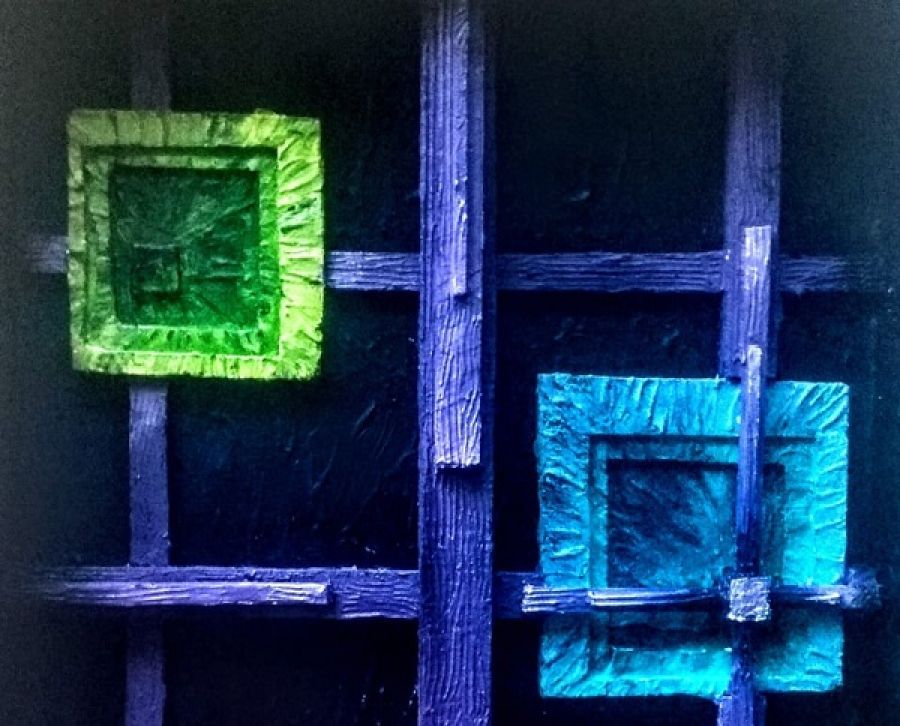 Su búsqueda auspicia tenacidad en la sensación de lograr el relieve. La puja vibracional del color en la moldura que, trabajada en la curva y contracurva y aún en la más sólida línea recta, permite admirar el surgimiento de la luz desde la oquedad del fondo, generalmente en tonos renegridos aplicados de manera plana.